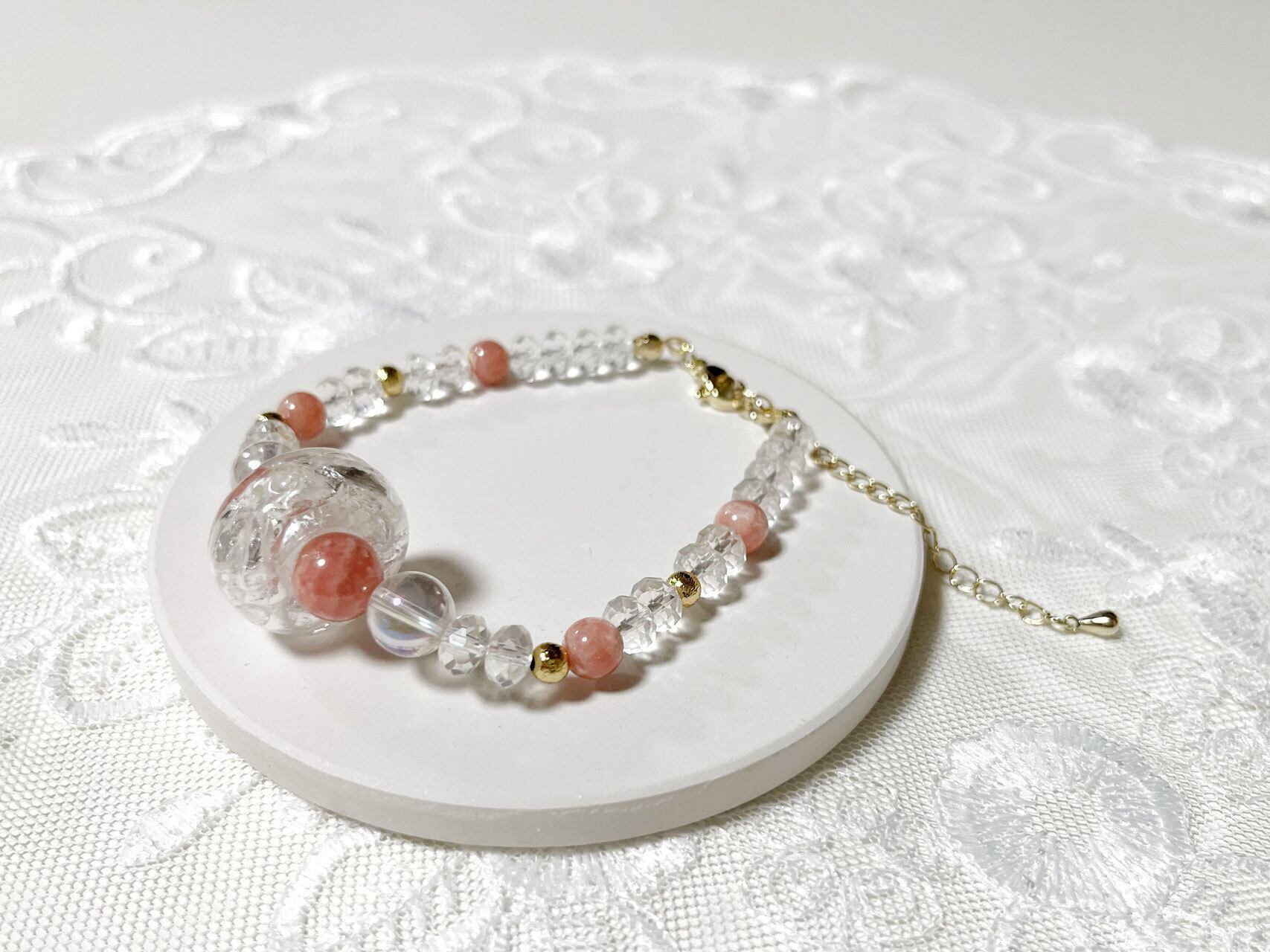 最高品質のインカローズを使用した贅沢な愛のアロマブレス。あなたの愛の傷を即座に癒し、【バラ色の人生】を選択するサポートをしてくれるプレミアムなブレスレットです。